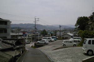 貴志駅前。 道を降りると紀ノ川に出ます。 |