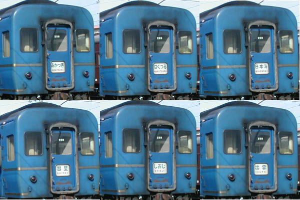 あかつき→はくつる→日本海→彗星→しおじ→出雲(全て文字)