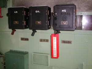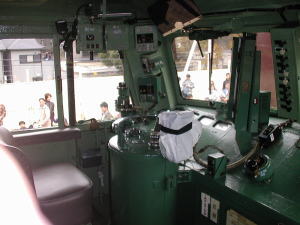 三日月形のものは、マスコン?で、今の車両と違い、回す量が大きいのだそうです。袋で覆われたのは防護無線。