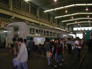 103系の30N改造された車両が上げ下ろし実演に使われていました。 なお車両はモハ103-769+モハ103-2026で、K605編成に連結されていた編成です。 |