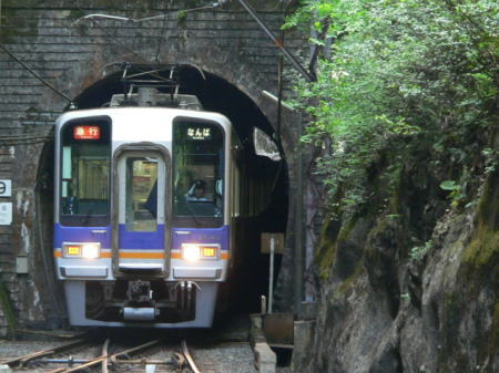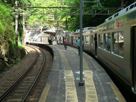 極楽橋まで各駅停車になる。いよいよ山岳区間に入るが、橋本駅まで線形が大幅に改良されており、