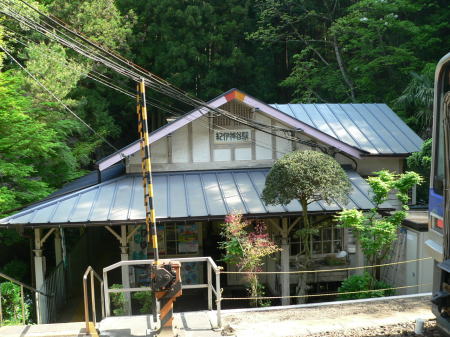 終点極楽橋のひとつ手前の紀伊神谷駅でも行き違い待ちのため停車。