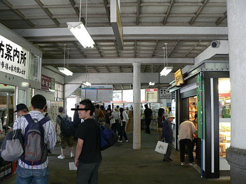 >駅舎内です。左手が観光案内所、右側がお土産や、正面が切符売り場です。