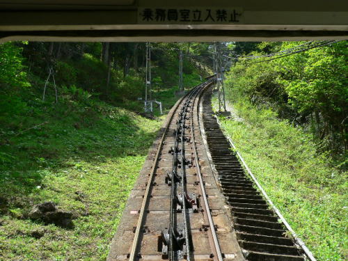 ケーブルカーで下山中に山上側を写したもので、相当な急勾配です。