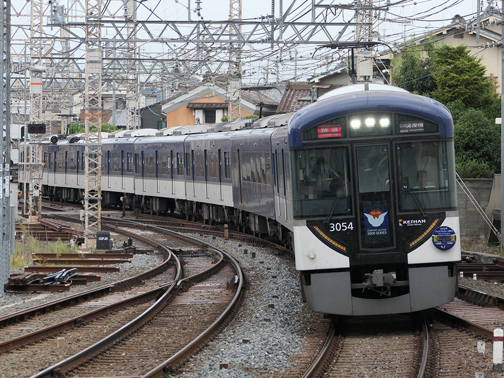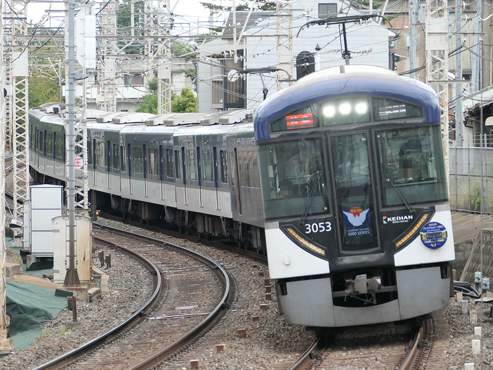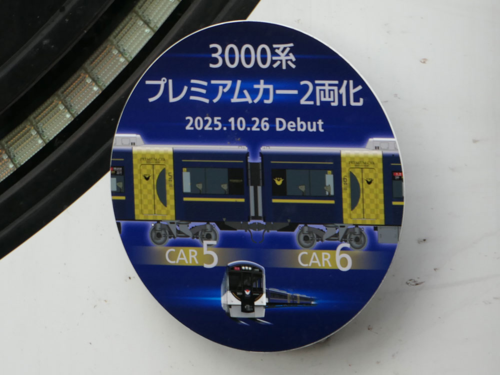 【京阪】京阪3000系プレミアムカー2両化記念ヘッドマークを掲出 京阪電鉄 X Facebook はてブ Pocket LINE コピー 2025.10.18 記事内に広告が含まれています。 京阪電車では、10月26日に3000系プレミアムカーが2両化されることを記念して、京阪線3000系にヘッドマークが掲出されています。 【京阪発表】 目次 ヘッドマークの詳細HM掲出編成の写真 ヘッドマークの詳細 3000系プレミアムカー同士の連結面が主な絵柄になっています。 掲出期間:10月12日(日)~11月25日(火) 運行区間:京阪線・鴨東線 掲出車両:3000系全6編成 HM掲出編成の写真 ▼3053F ▼3054F ▼3056F