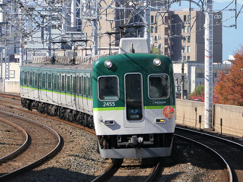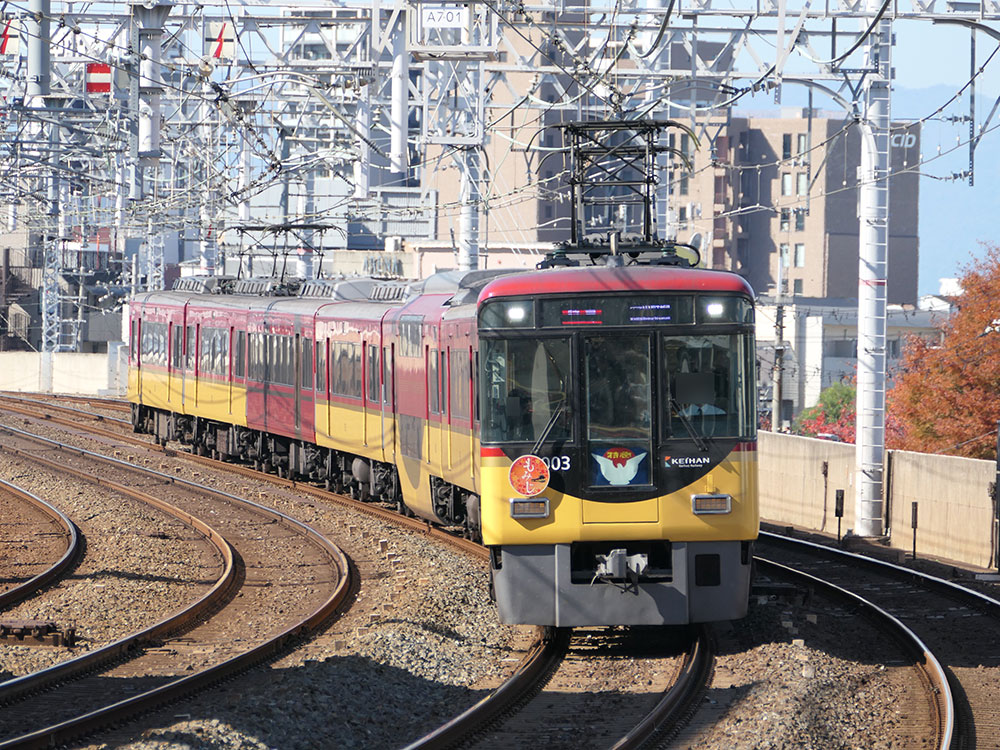 京阪線3形式3編成、大津線2形式2編成に『もみじ』HMが掲出されます。