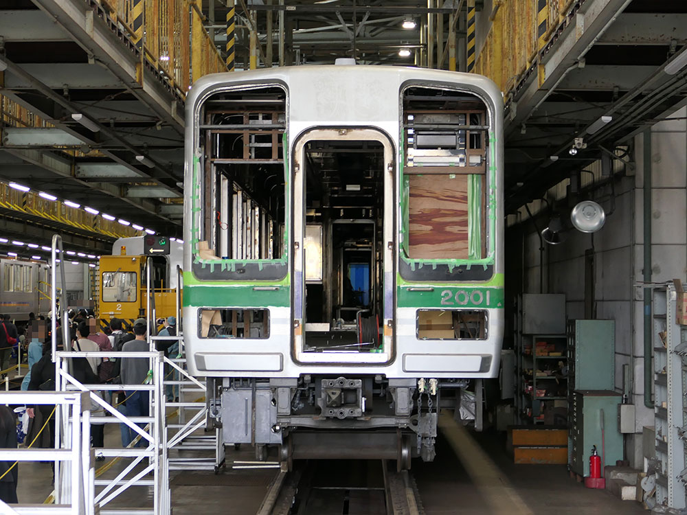 ▼2051号車。2001Fは先日発表のあったGRAN天空への改造中のようで、大半の窓が埋められています。