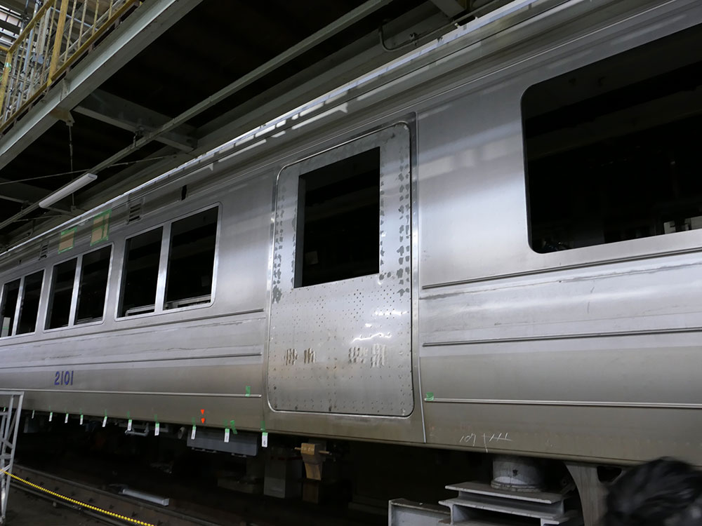 ▼2101号車。こちらの車両も片方の扉が埋められています。