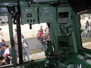 三日月形のものは、マスコン?で、今の車両と違い、回す量が大きいのだそうです。袋で覆われたのは防護無線。